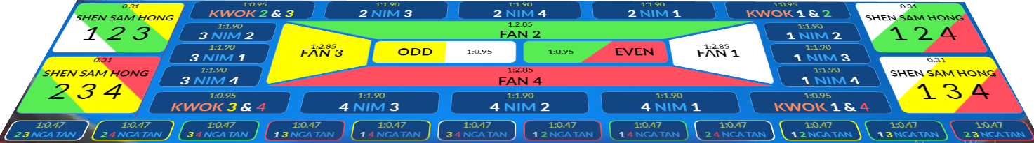 | 20 | Ganjil,Genap,Kecil,Besar | Nilai dadu biru sesuai dengan yang anda pasang |